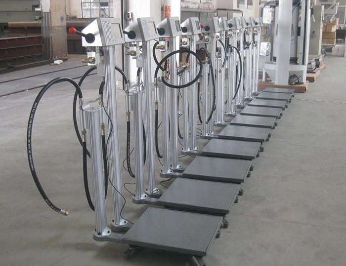 液化氣罐裝電子秤主要由噴槍裝置、系統(tǒng)控制箱、電子平臺秤、機械結(jié)構(gòu)件、輸送滾道等組成,結(jié)構(gòu)緊湊合理、工作穩(wěn)定可靠、安裝操作簡便,能夠針對各種現(xiàn)場和生產(chǎn)能力作相應(yīng)調(diào)整,滿足用戶要求;本系統(tǒng)自動化程度高,可以盡量避免物料溢出,可防止物料本身對環(huán)境的污染,從而對操作人員進行勞動防護。